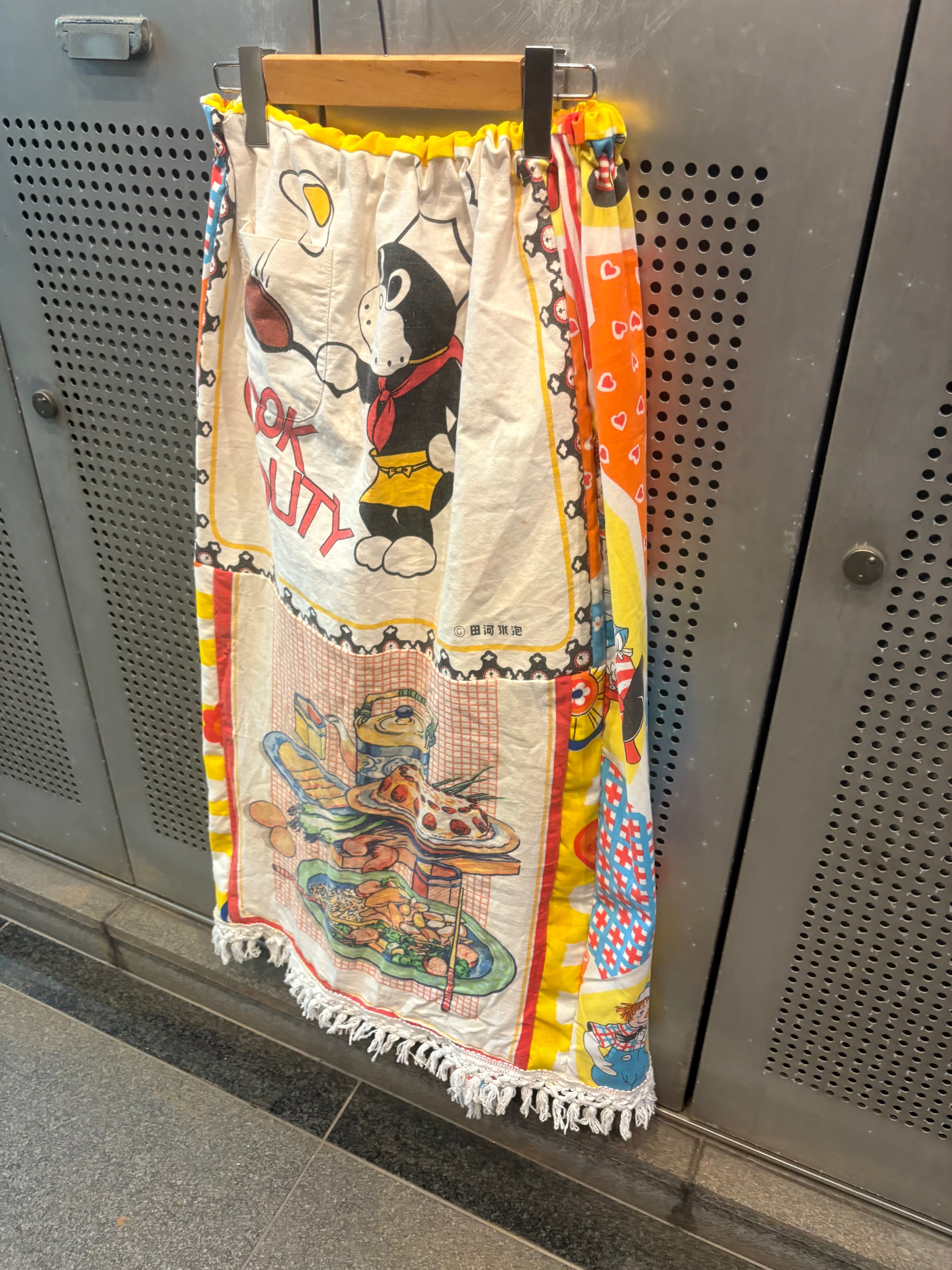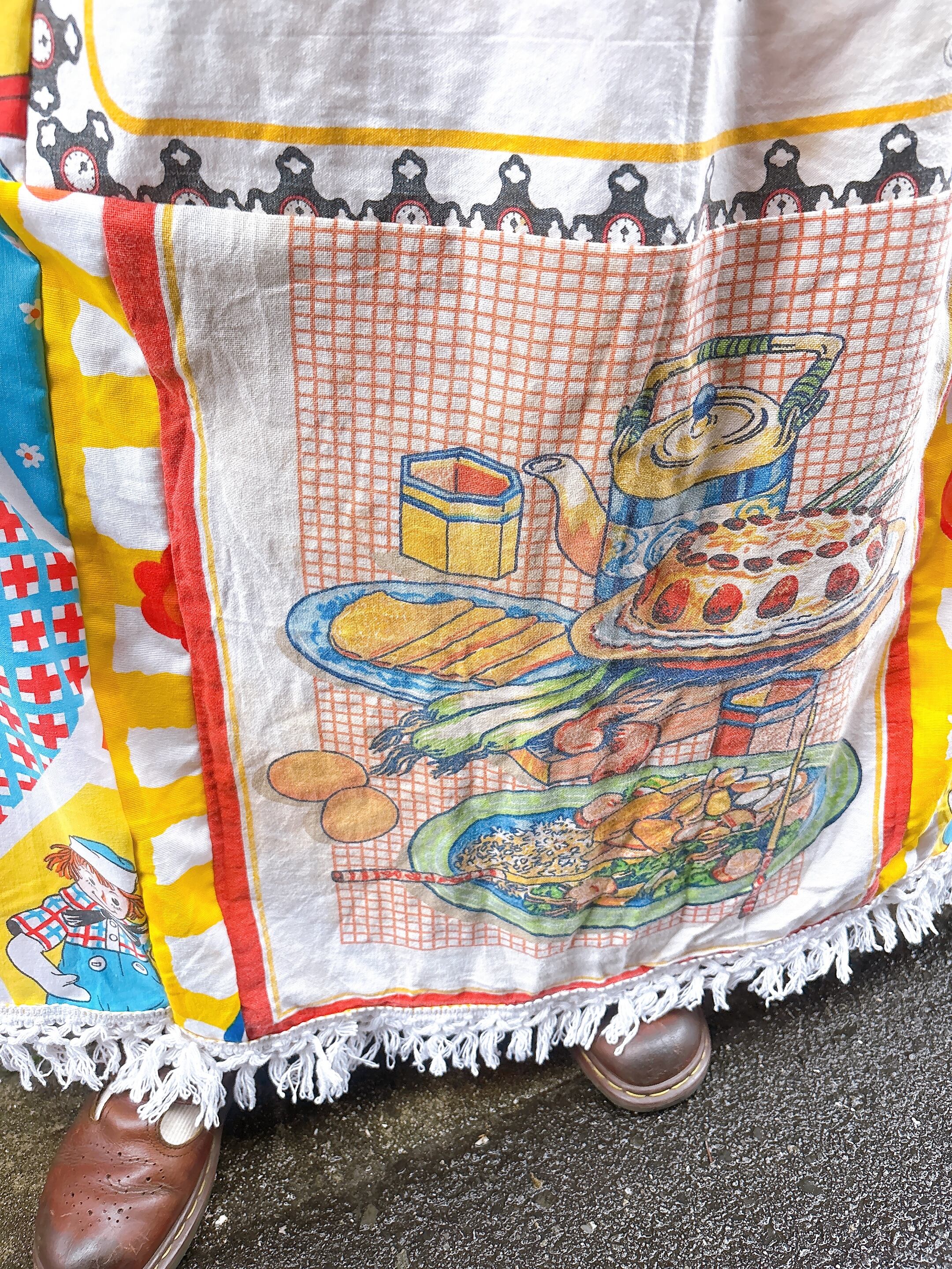ヴィンテージの生地をパッチワークしたリメイクスカートになります。