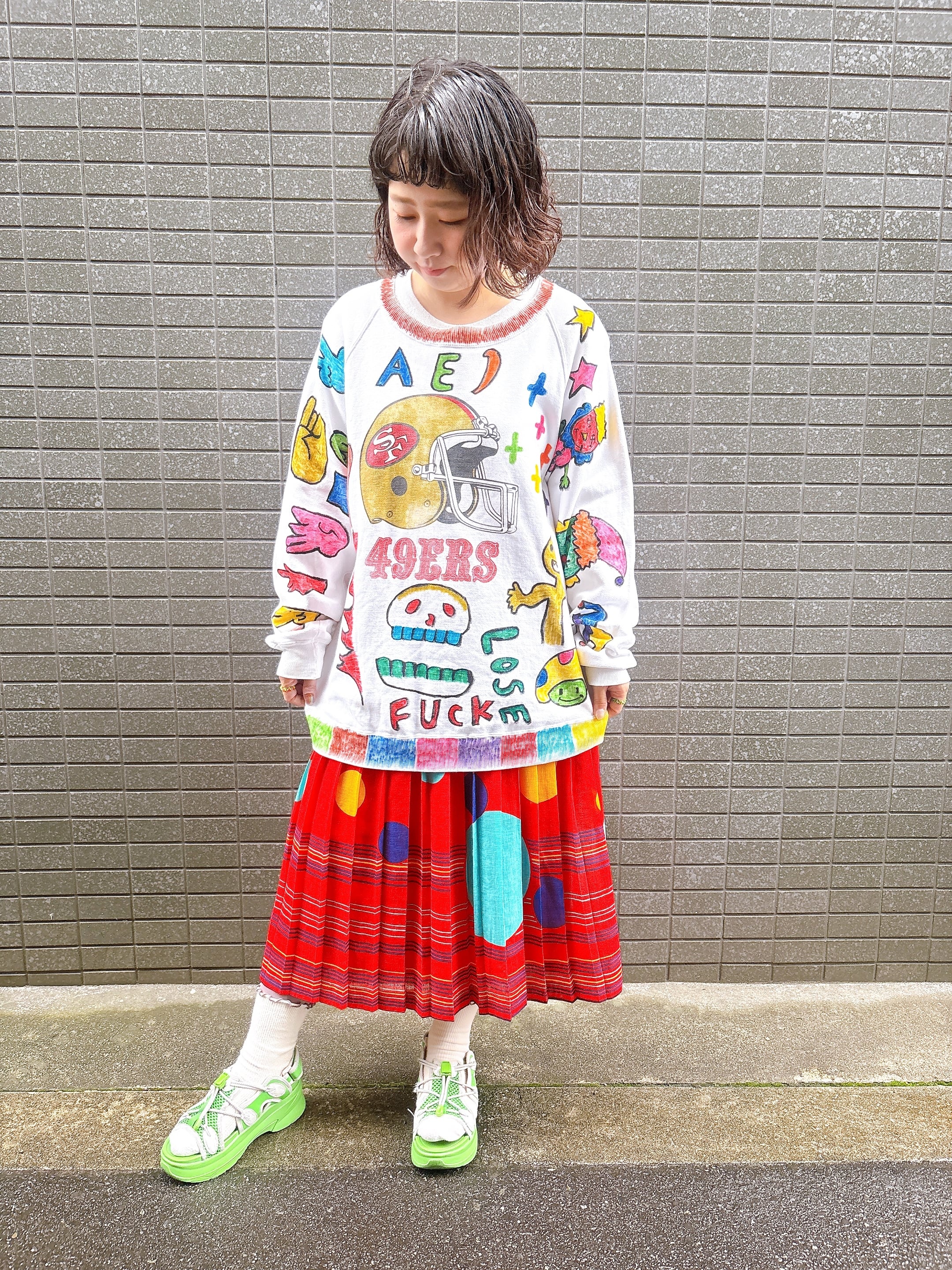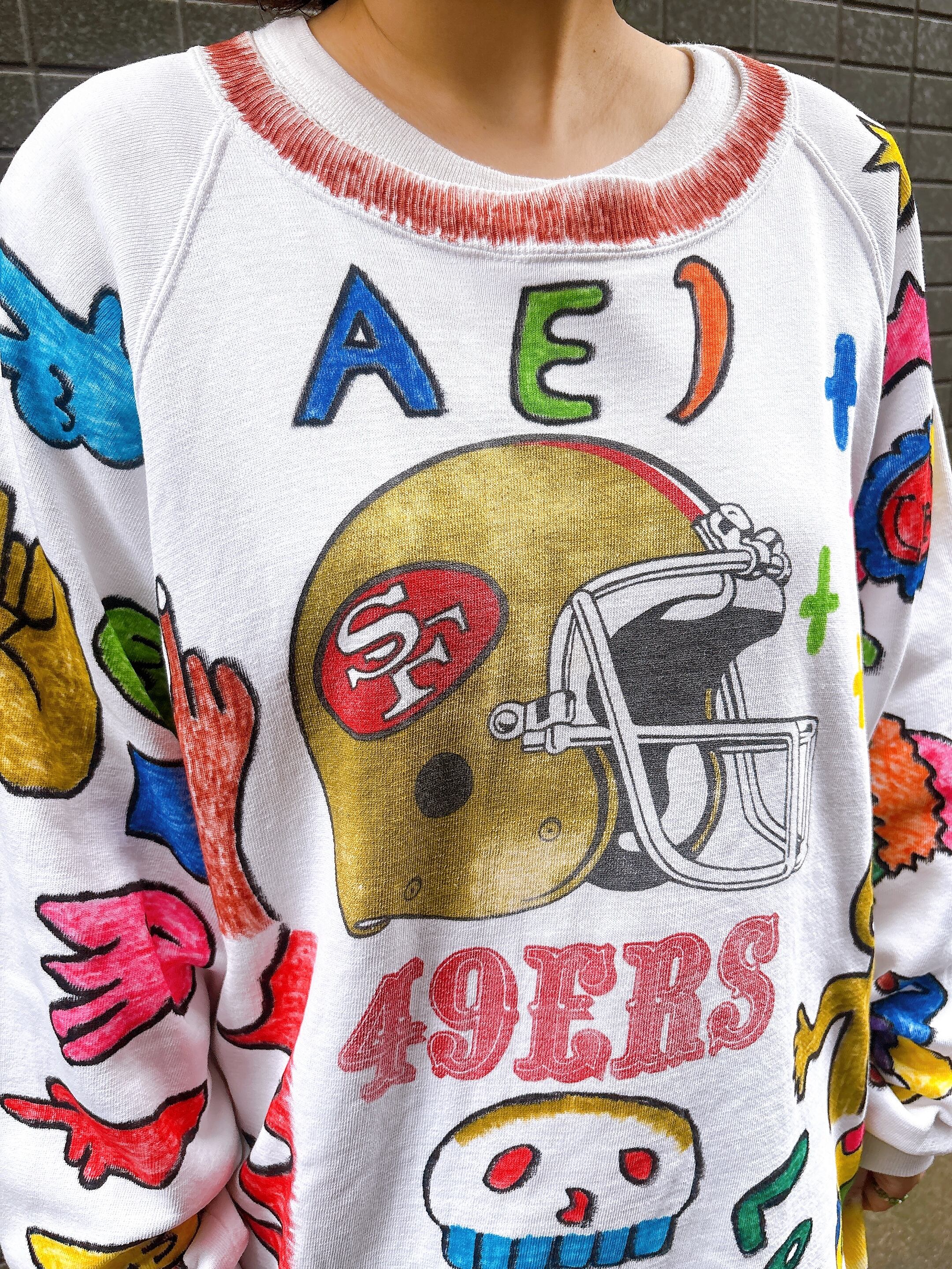 ※プリントスウェットにカラフルな落書きを施した完全一点物リメイクスウェットになります。