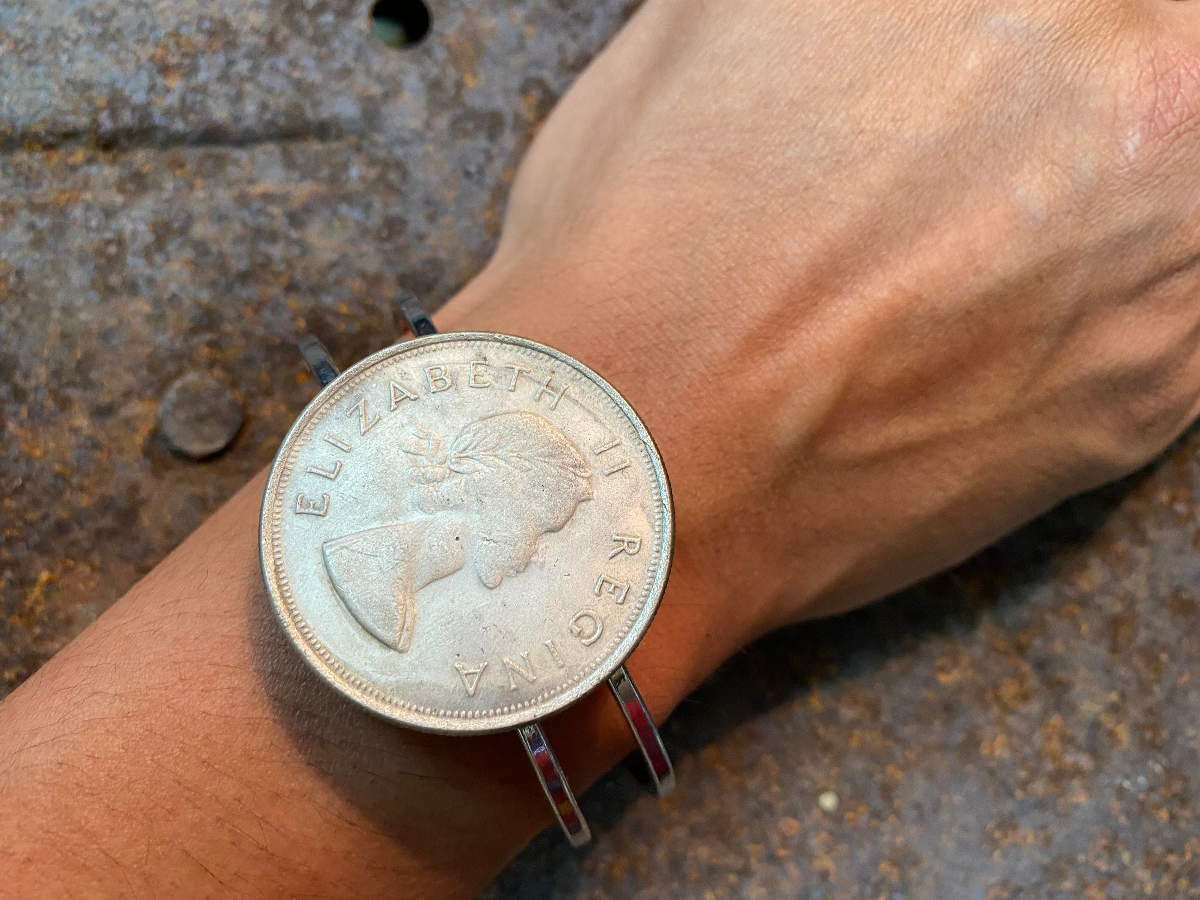 ヴィンテージのコインを使用したバングルです*