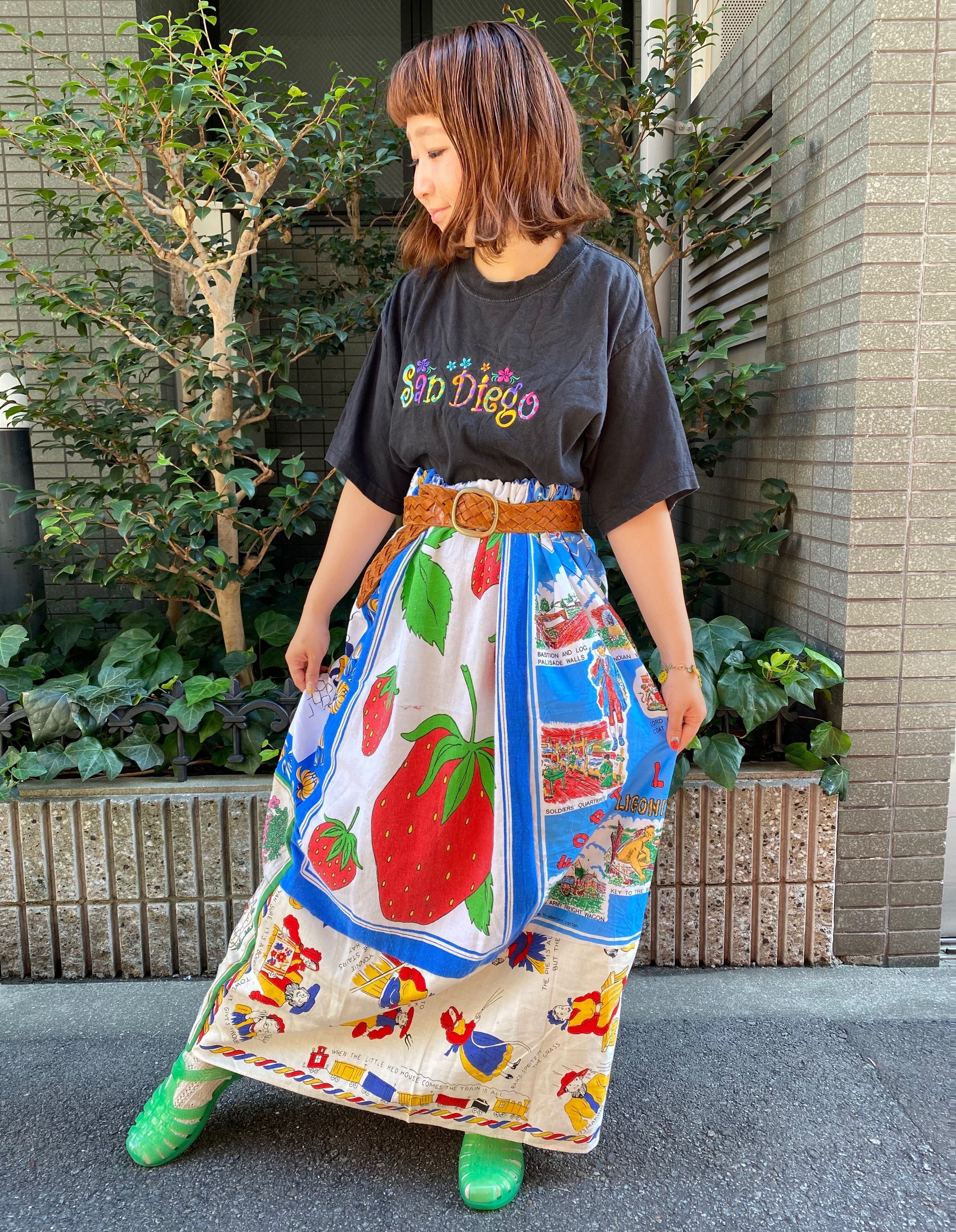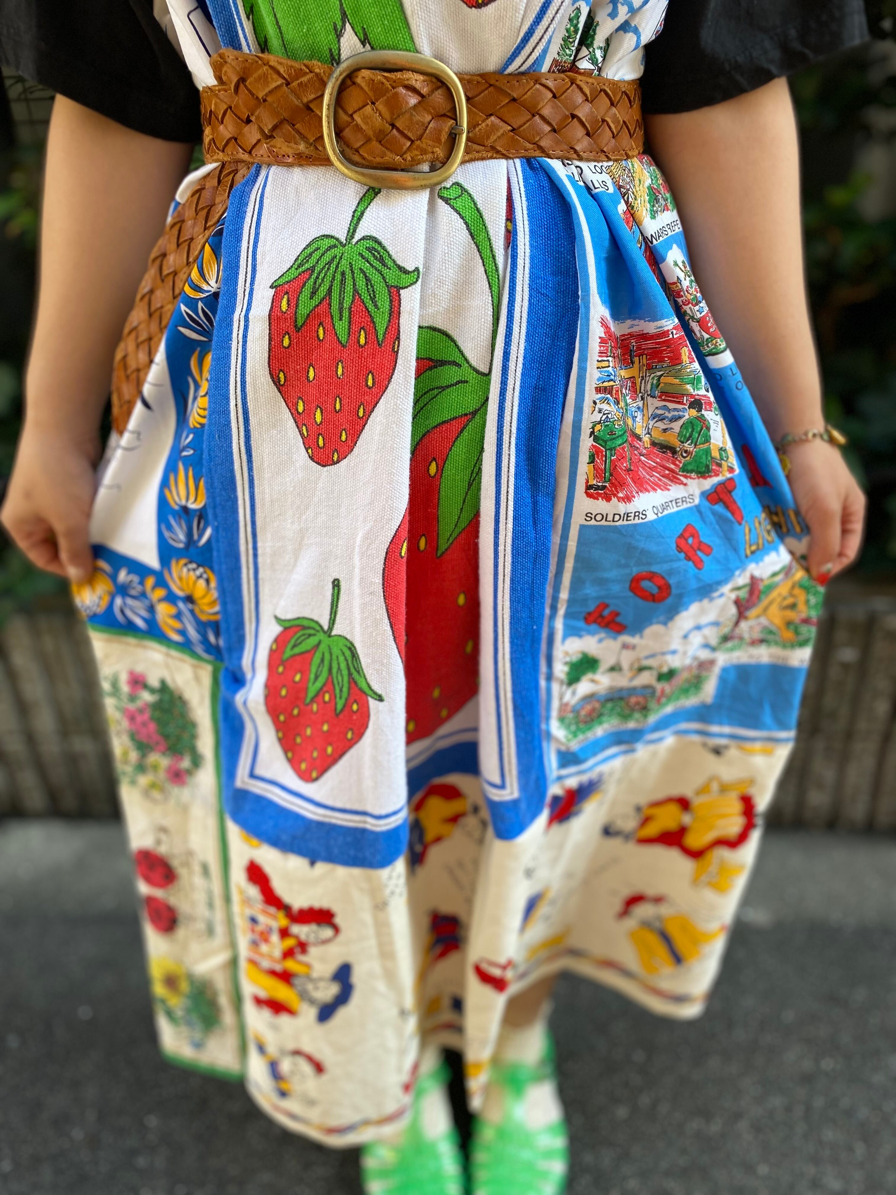 【送料無料】ヴィンテージパッチワークスカート(いちご)