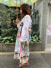 ヴィンテージファブリックをパッチワークしたベアワンピース*