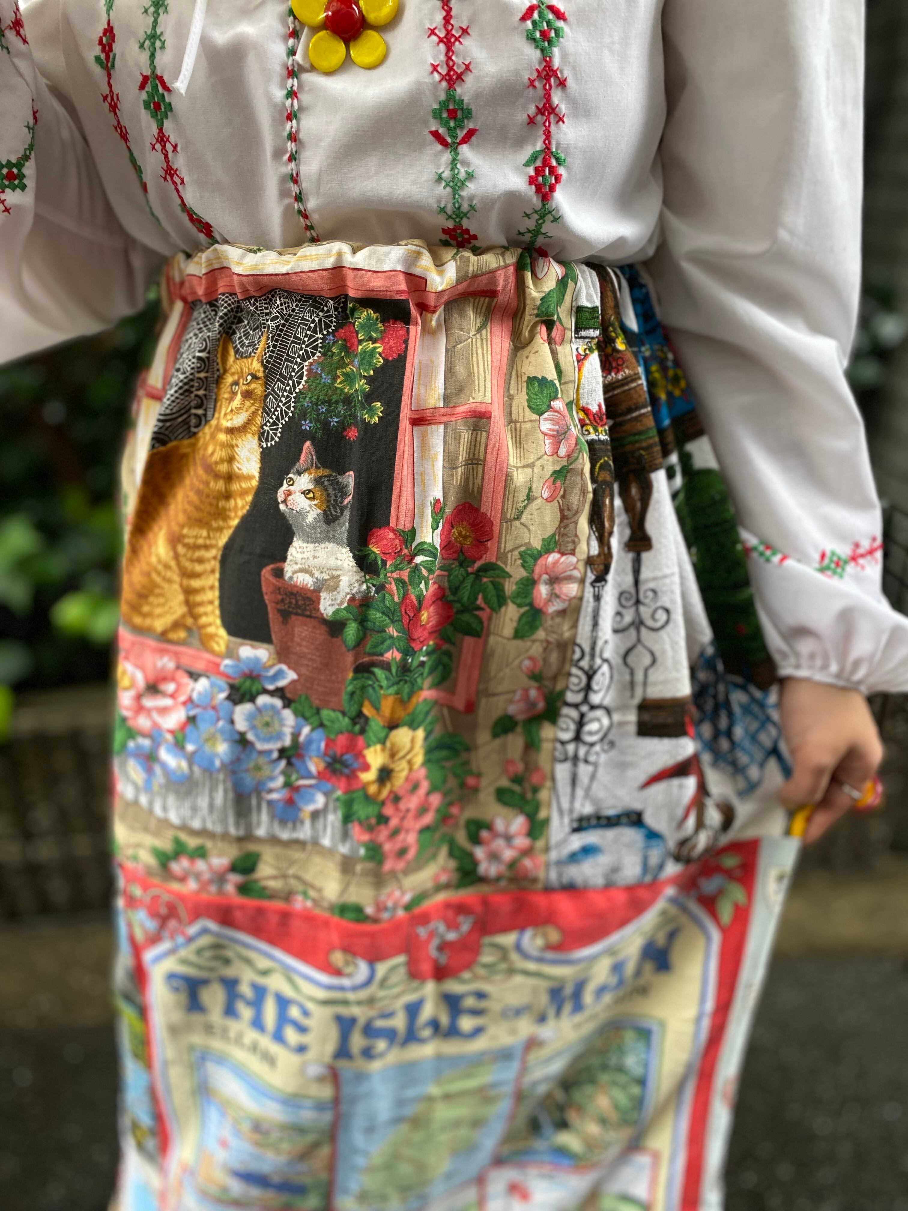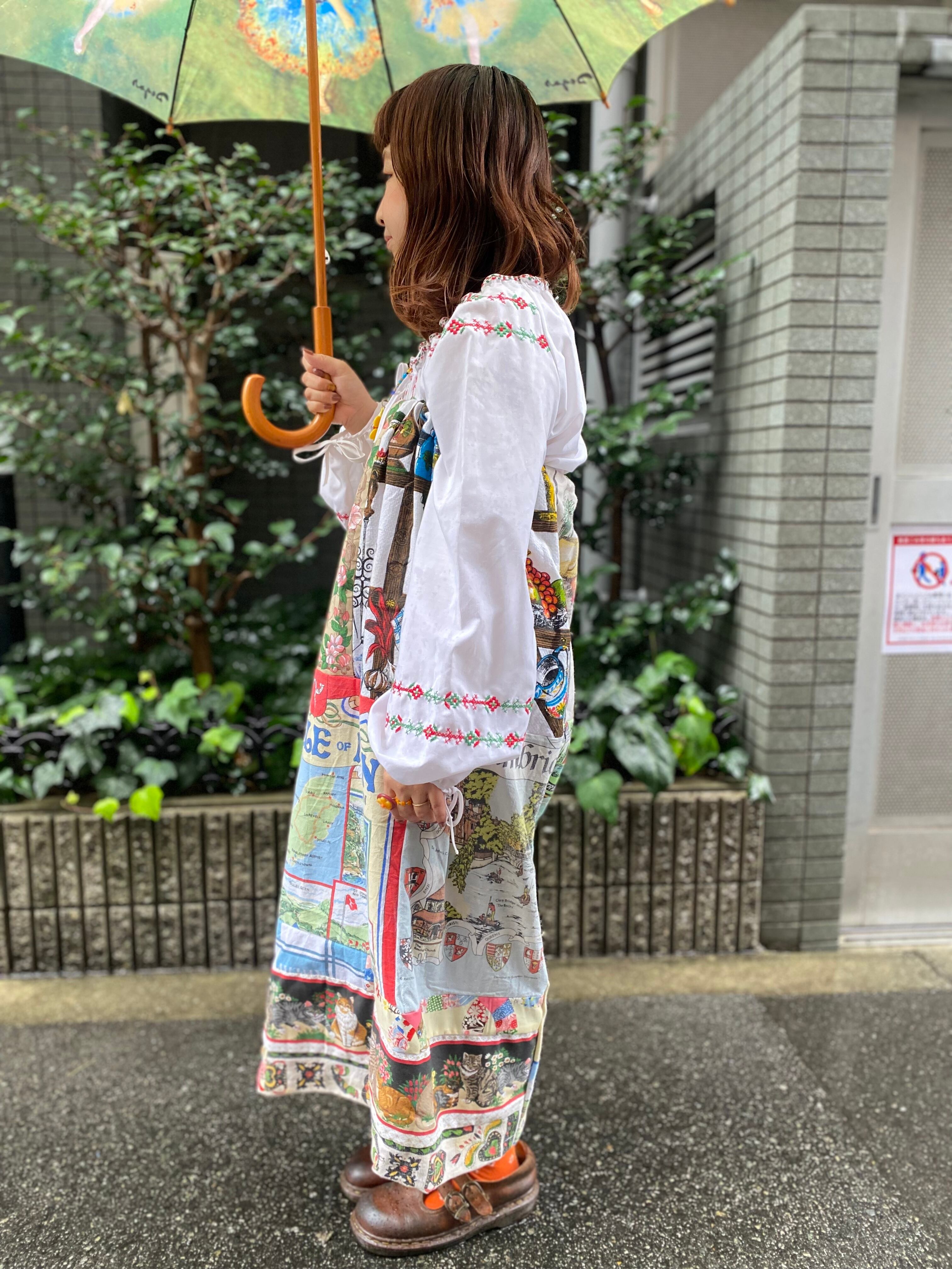 【送料無料】ヴィンテージパッチワークベアワンピース(ねこ)