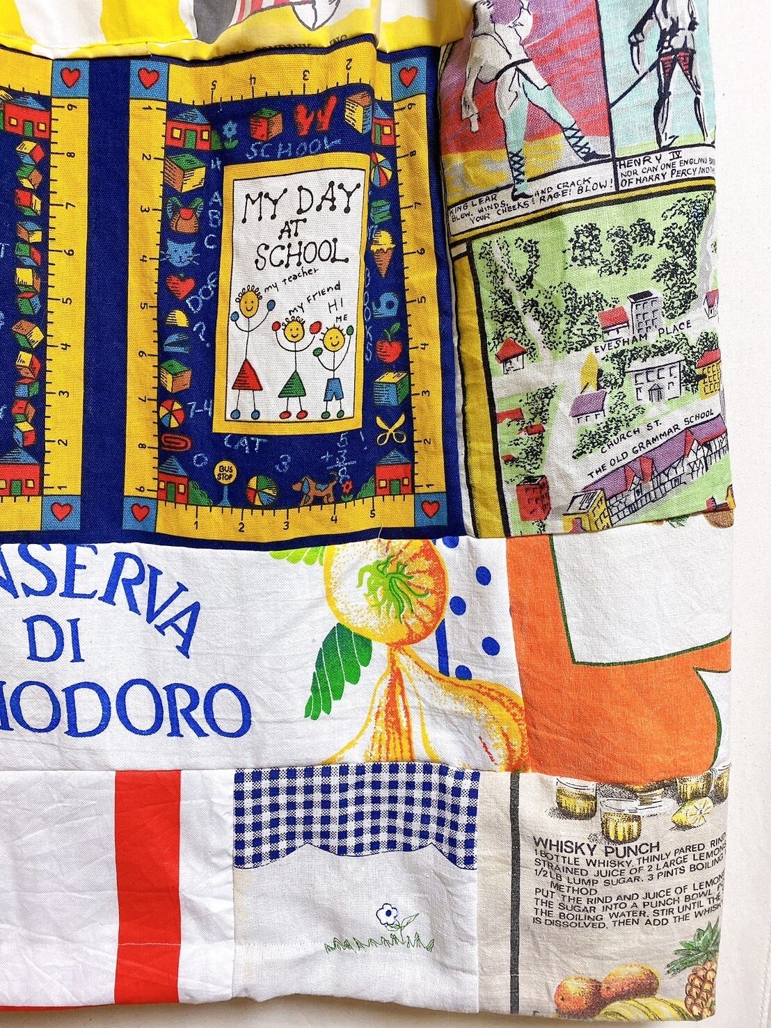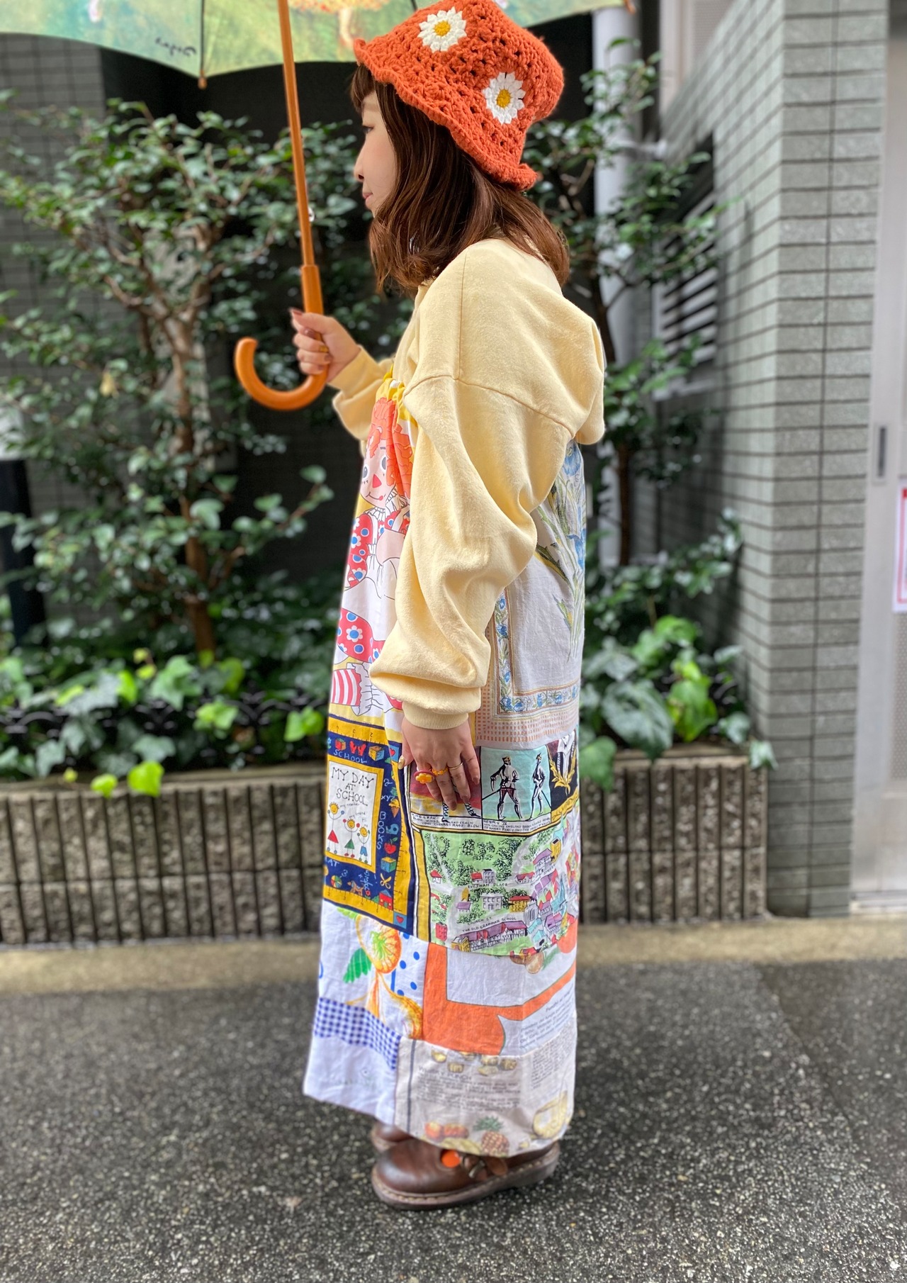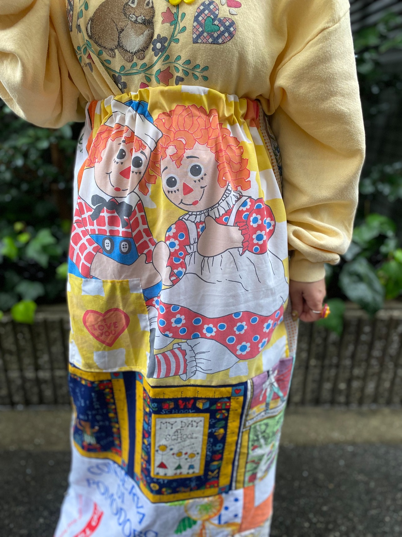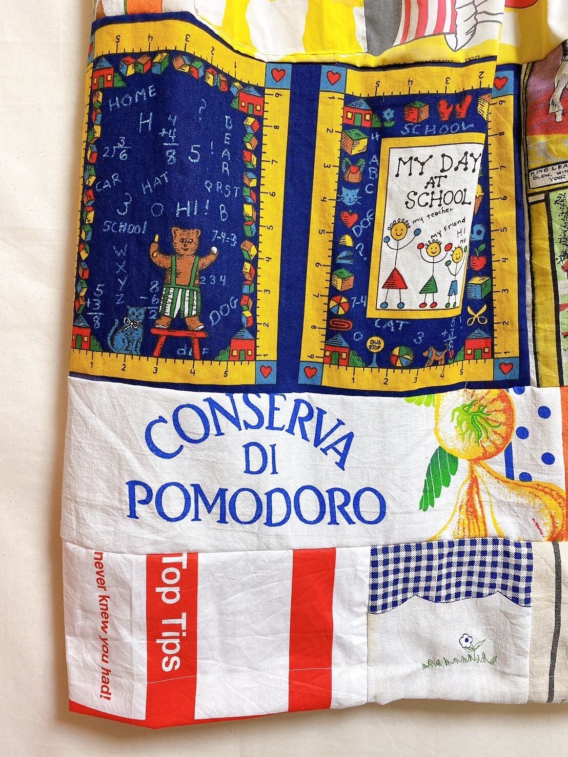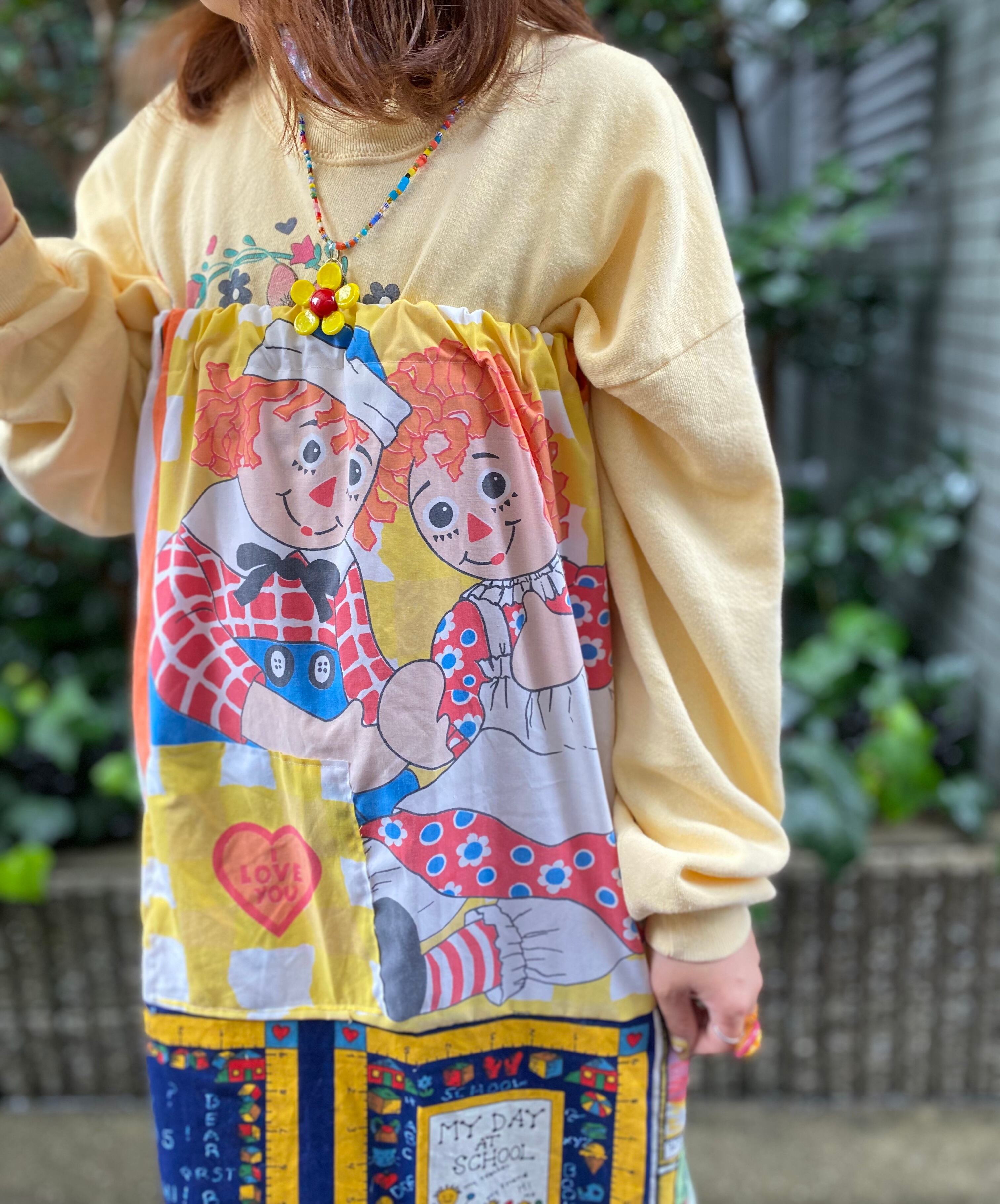 ヴィンテージファブリックをパッチワークしたベアワンピース*