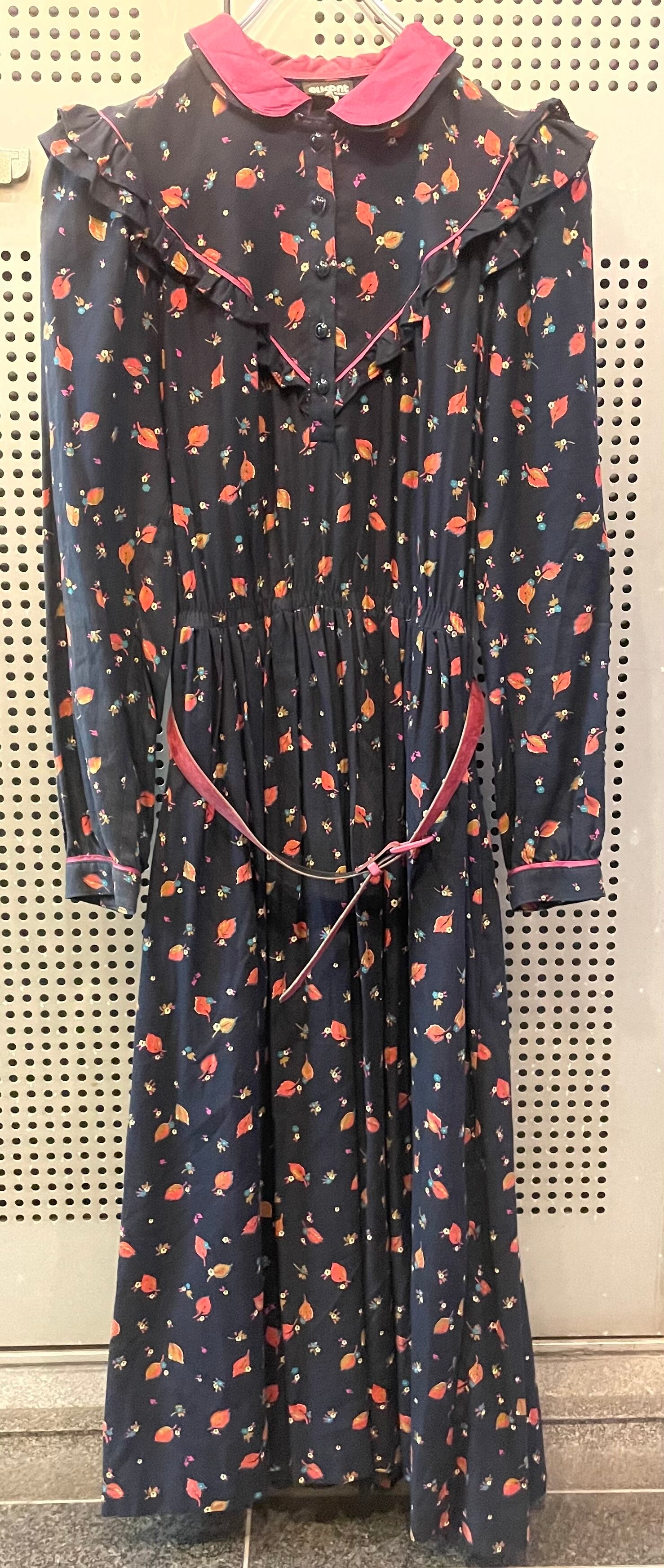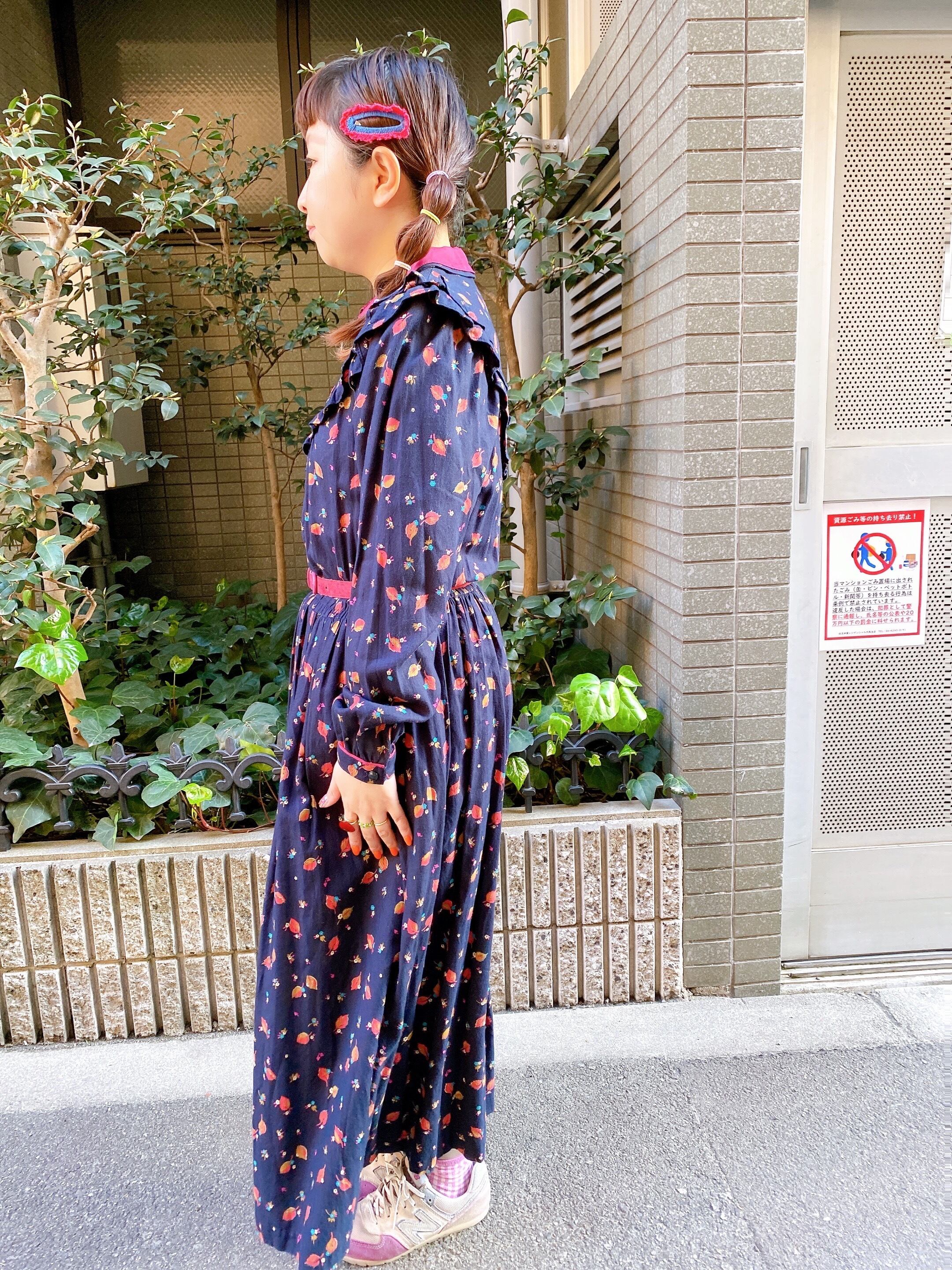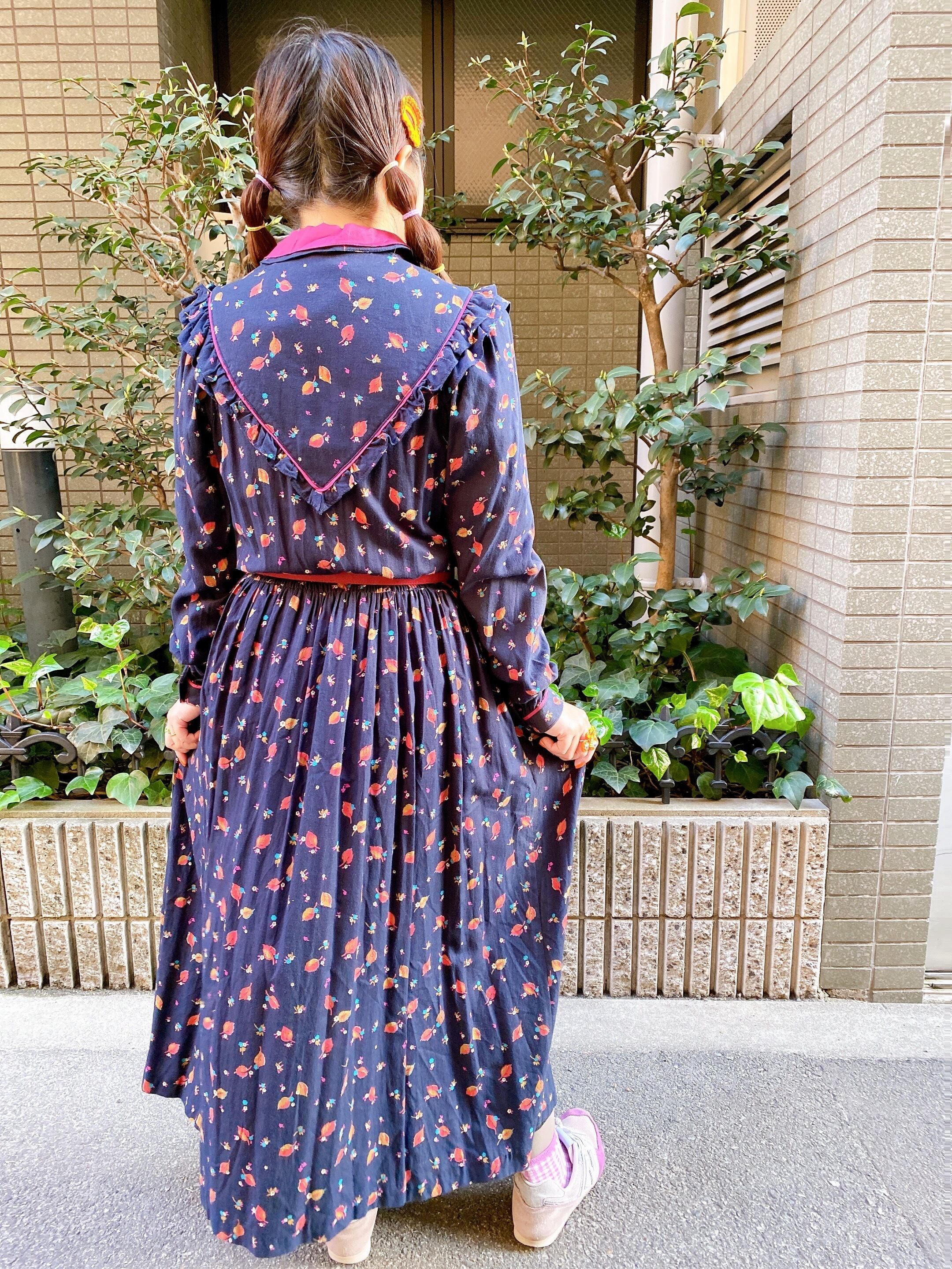【送料無料】リーフ柄丸襟フリルワンピース