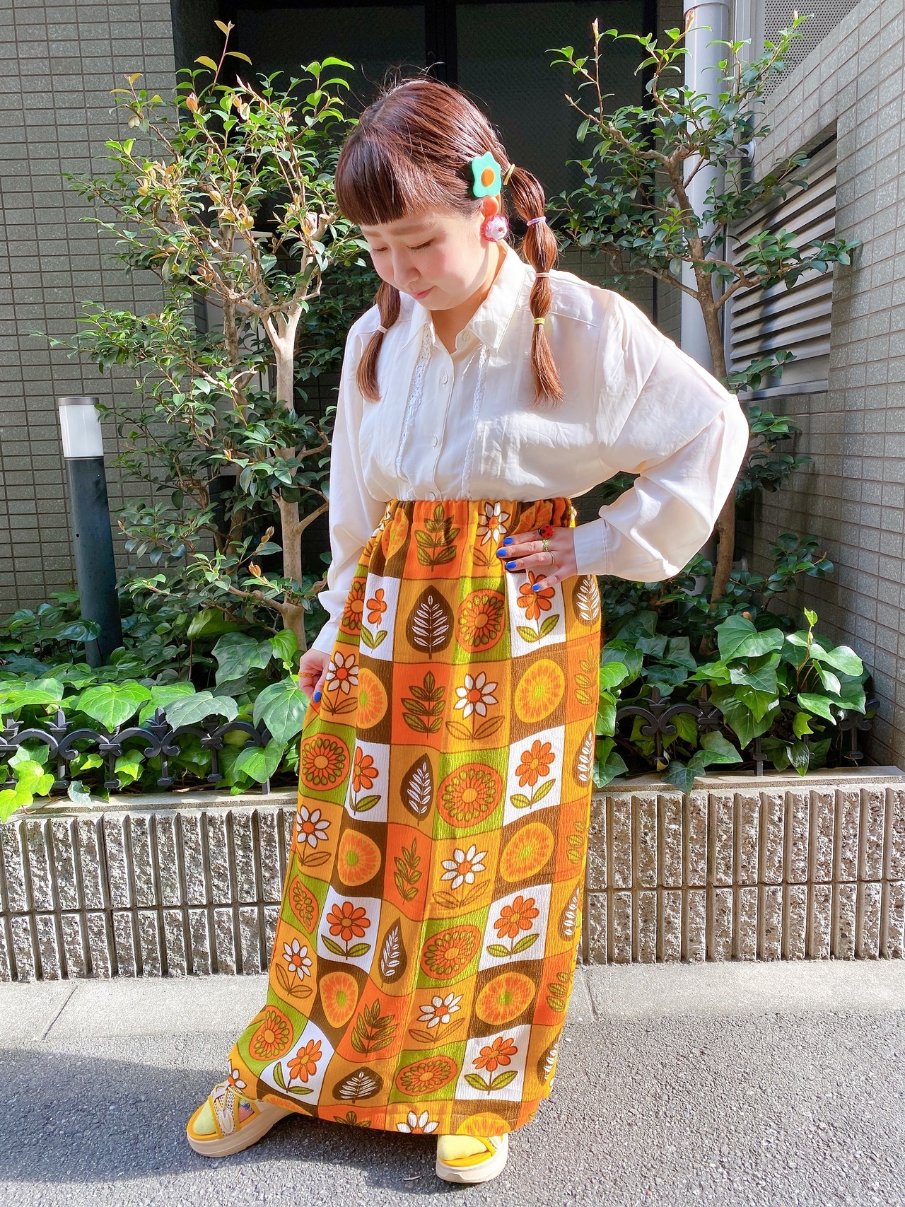 ヴィンテージの生地を使ったスカートになります。
