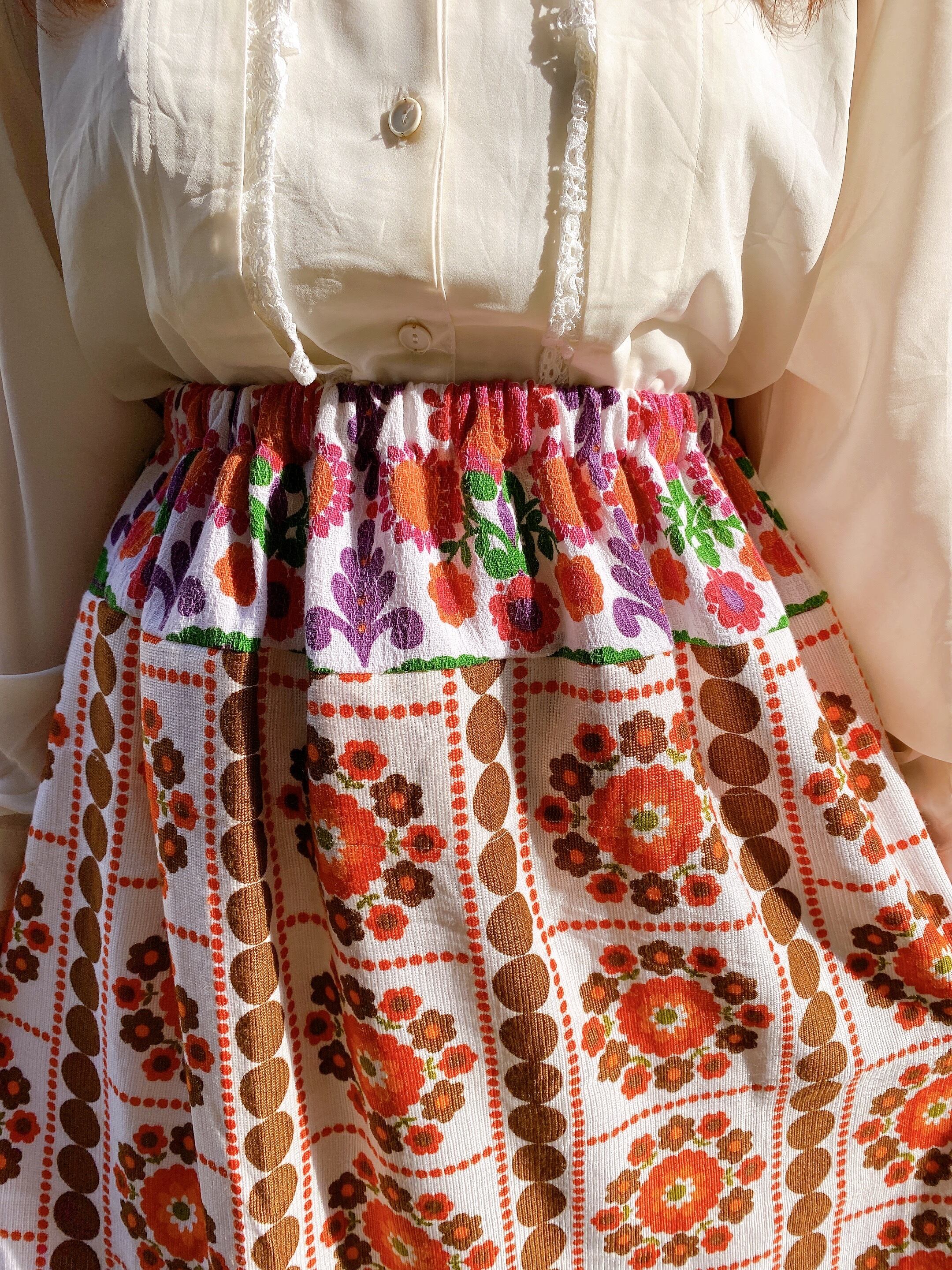 ヴィンテージの生地を使ったスカートになります。