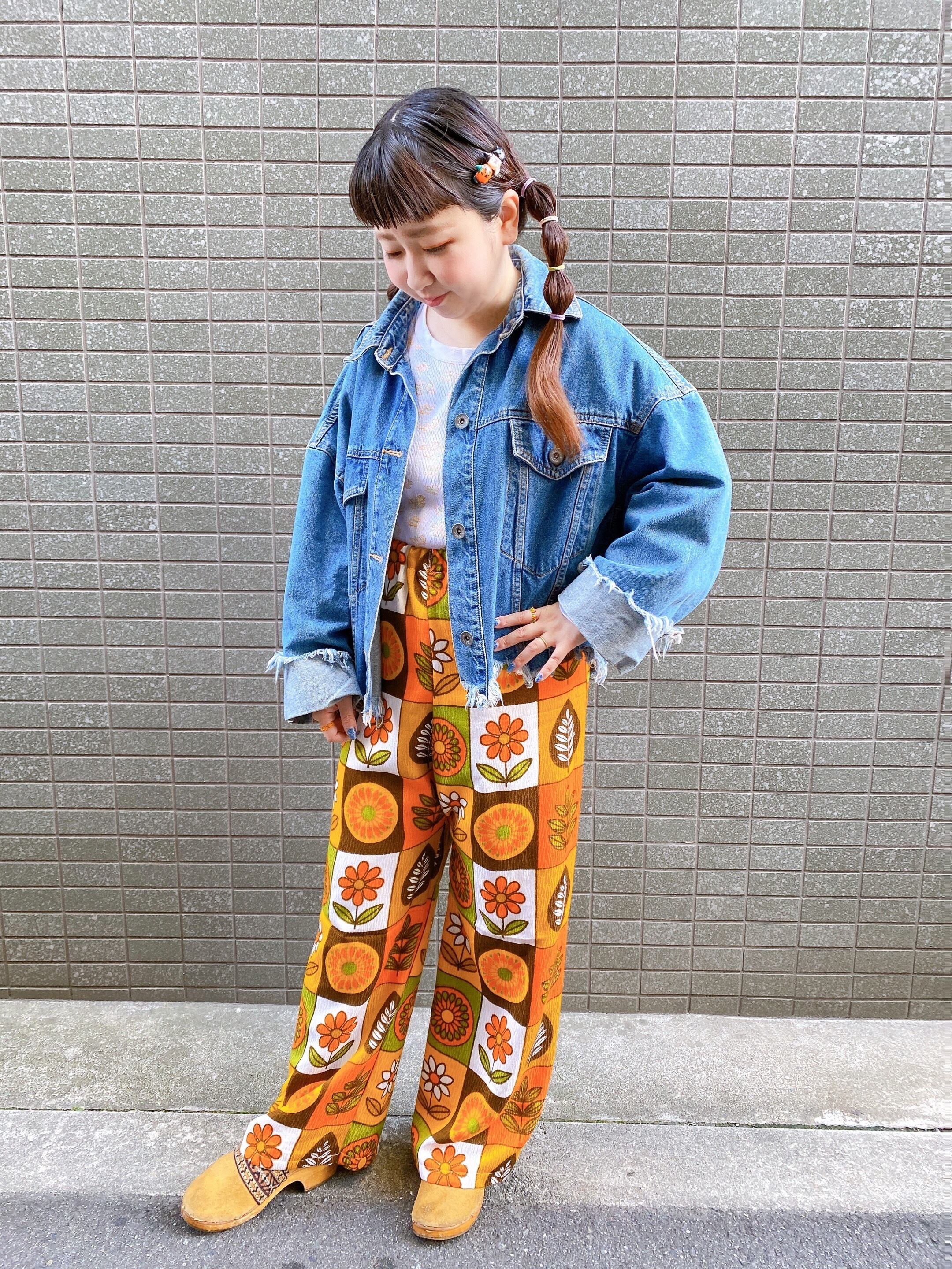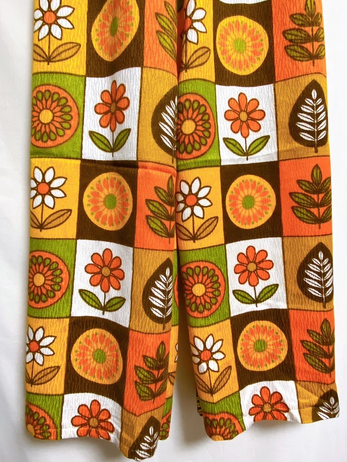 レトロな花柄の生地を使ったヴィンテージパンツになります。