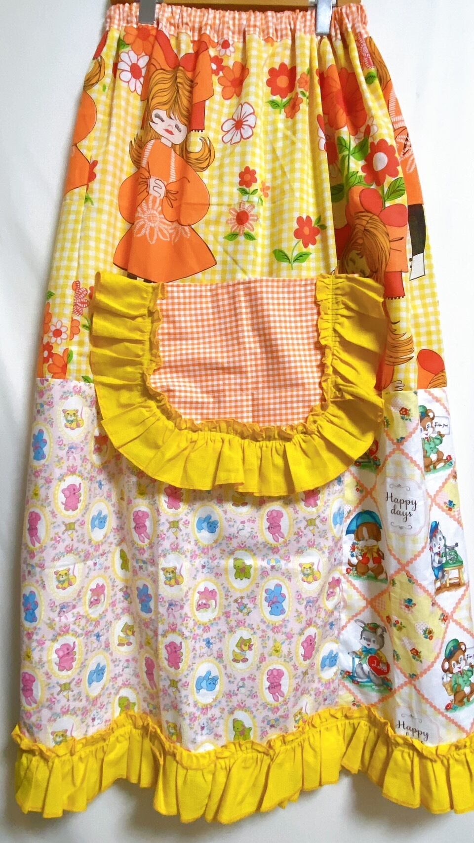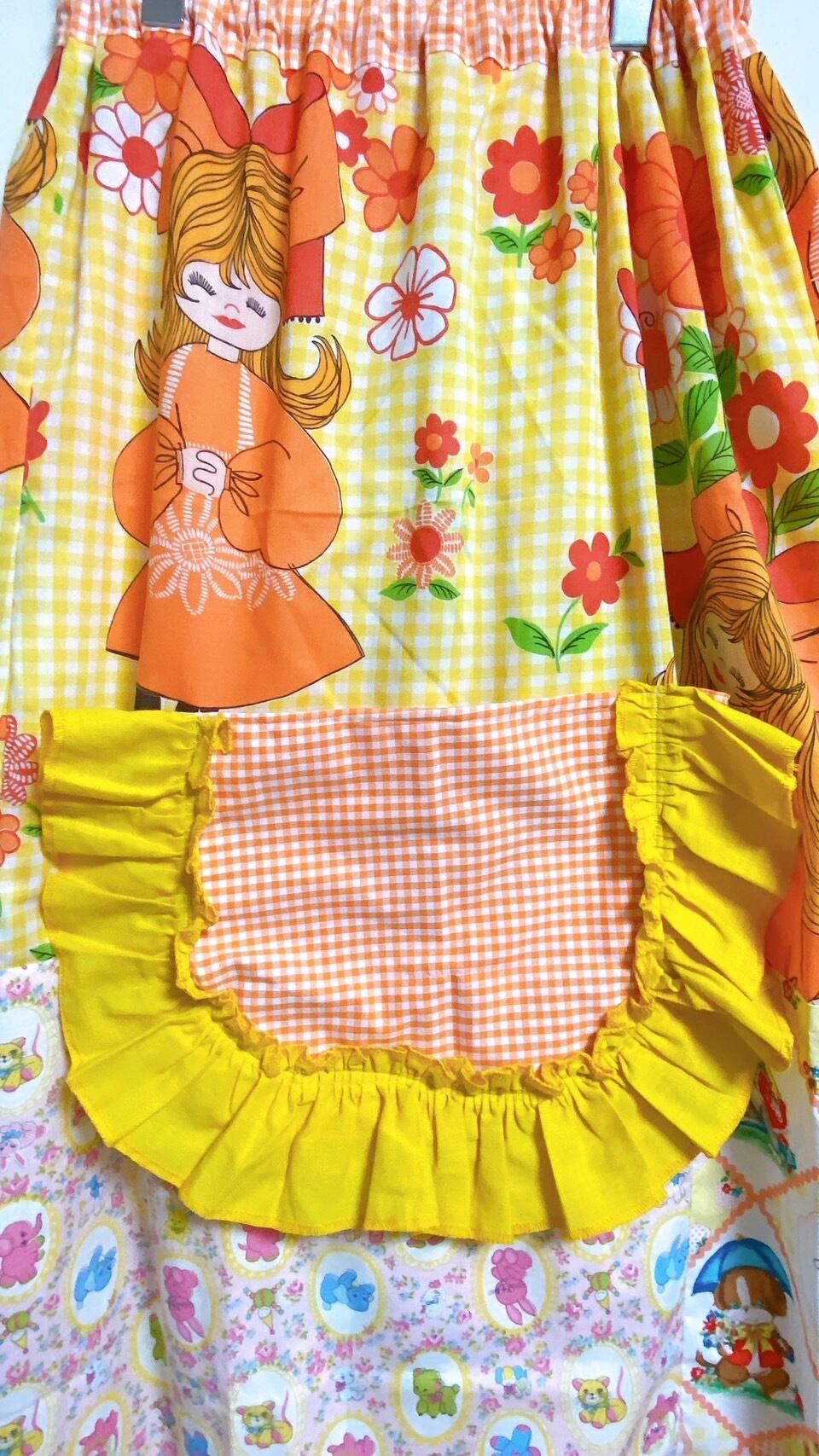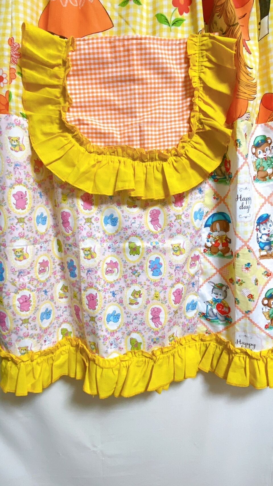 【送料無料】ヴィンテージパッチワークベアワンピース(ポケット付き)