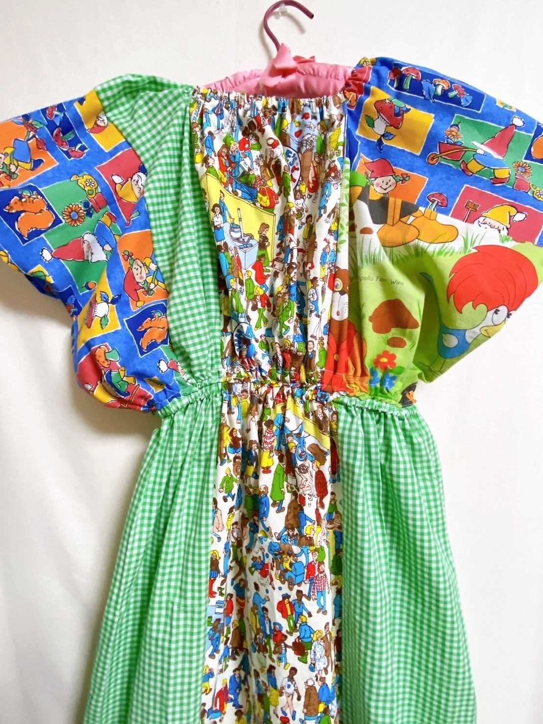 ヴィンテージ生地をパッチワークしたワンピース*