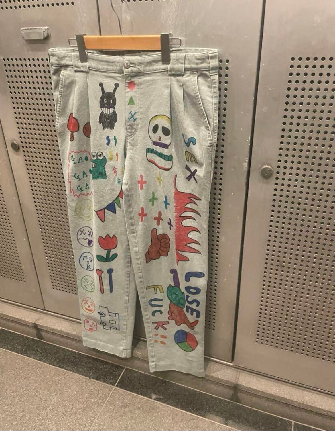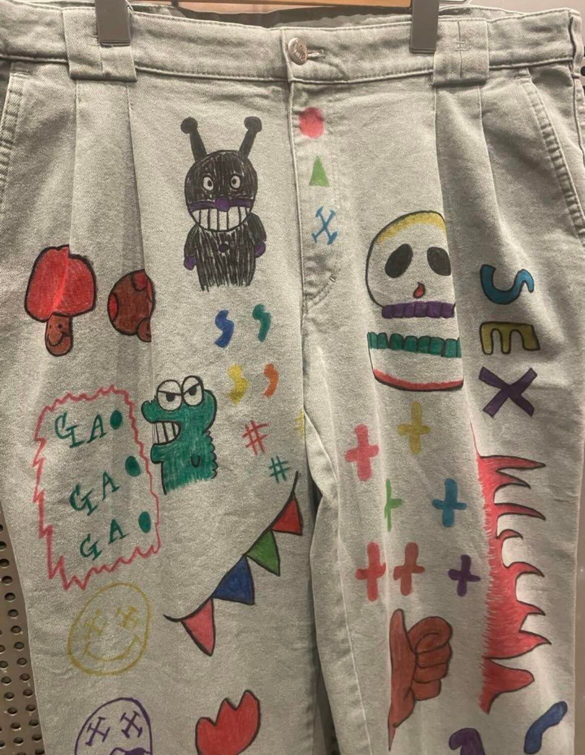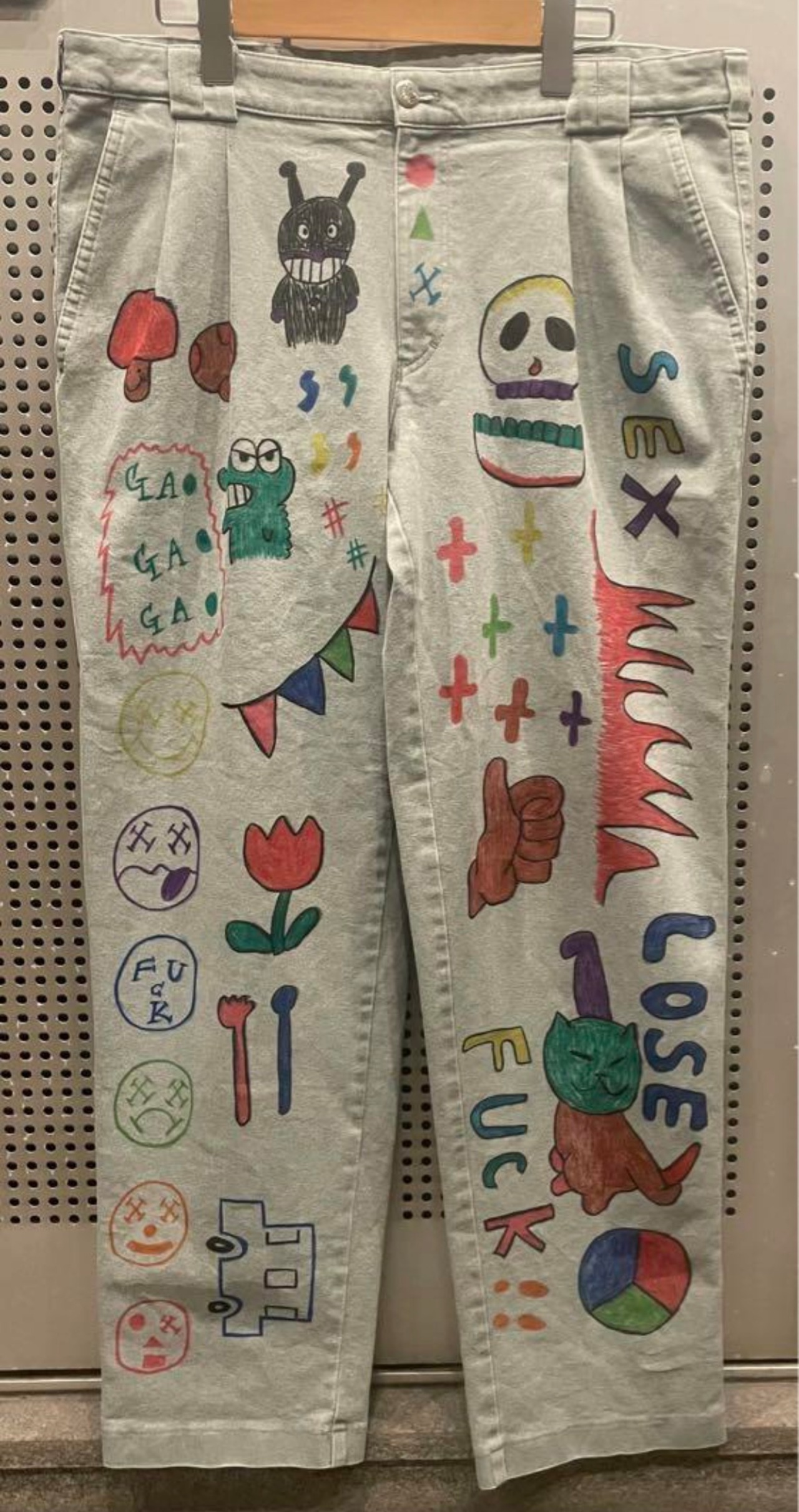※USEDのチノパンにカラフルな落書きを施したリメイクパンツになります。